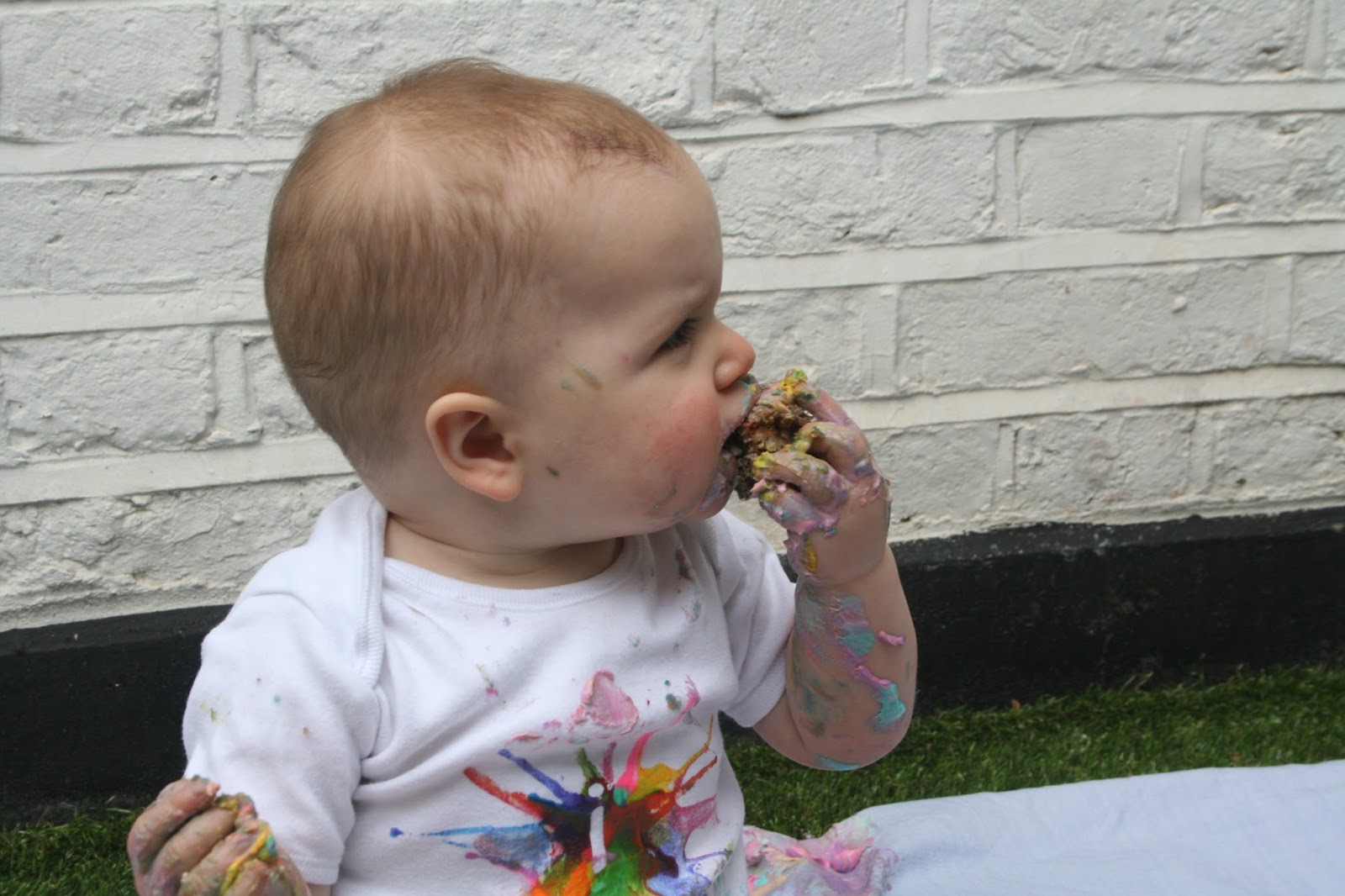 Ever since I saw a picture of one of these I've been wanting to try it out. For the "cake" bit we used our sugar-free wacky cake (full recipe here) as I wanted Iz to be involved in making her 'proper' first birthday cake :)